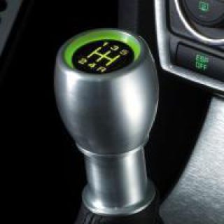 Rukojeť řadící páky se zeleným LED podsvícením grafiky 5-ti stupňové kulisy řazení.