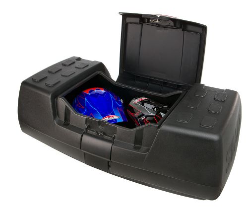 Vychytaná, elegantní a stabilní dvojitá konstrukce z vysoce kvalitního plastu, 110 litrů úložného prostoru, dost místa i pro dvě helmy, měkká polstrovaná opěrka zad a červená zpětná odrazka dělají z tohoto boxu výhodnou koupi. Integrovaný zámek zvyšuje bezpečnost uložených věcí. Box je vhodný jak pro těžké pracovní využití, tak pro náročné turistické použití. Objem 110 litrů.