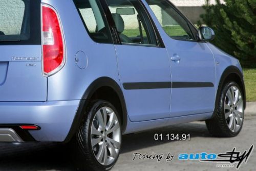 Lemy blatníků pro Škoda Roomster v černém desénu zvýrazní boční linie Vašeho vozu. Desetidílná sada se vyznačuje velmi jednoduchou montáží pomocí oboustranné samolepky. Tento tuning zvládne i naprostý laik.