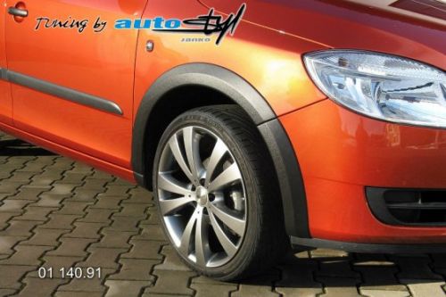 Lemy blatníků pro Škoda FabiaII facelift v černém desénu zvýrazní boční linie Vašeho vozu. Desetidílná sada se vyznačuje velmi jednoduchou montáží pomocí oboustranné lepící pásky. Tento tuning zvládne i naprostý laik.