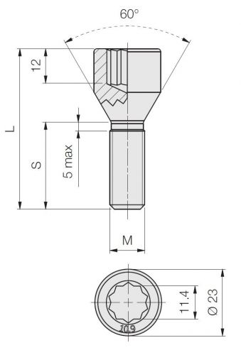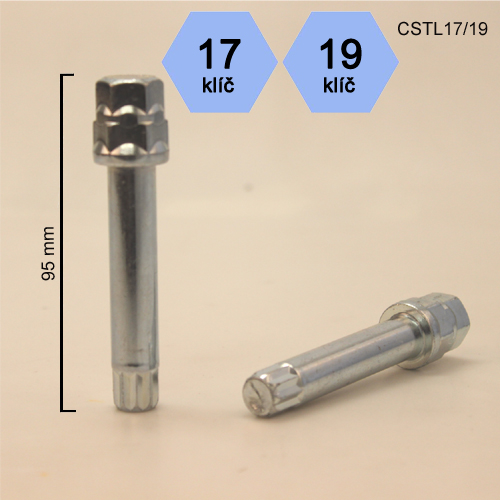 Šroub s vnějším průměrem hlavy 23mm pro aftermarketová kola s úzkými otvory pro šrouby. K těmto šroubům je nutné doobjednat speciální klíč - adapter (CSTL) který dodáváme se šestihranem pro klíč 17mm, 19mm a 21mm.