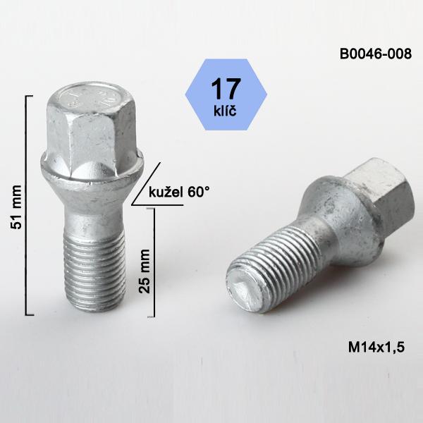 Šroub M14x1,5x25 kužel, klíč 17, výška 51 mm