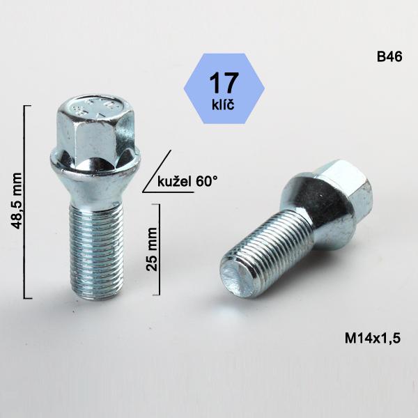 Šroub M14x1,5x25 kužel, klíč 17, výška 48,5