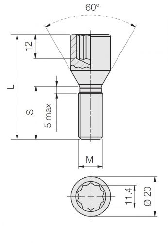 Šroub s vnějším průměrem hlavy 20mm pro aftermarketová kola s úzkými otvory pro šrouby. K těmto šroubům je nutné doobjednat speciální klíč - adapter (CSTL) který dodáváme se šestihranem pro klíč 17mm, 19mm a 21mm.