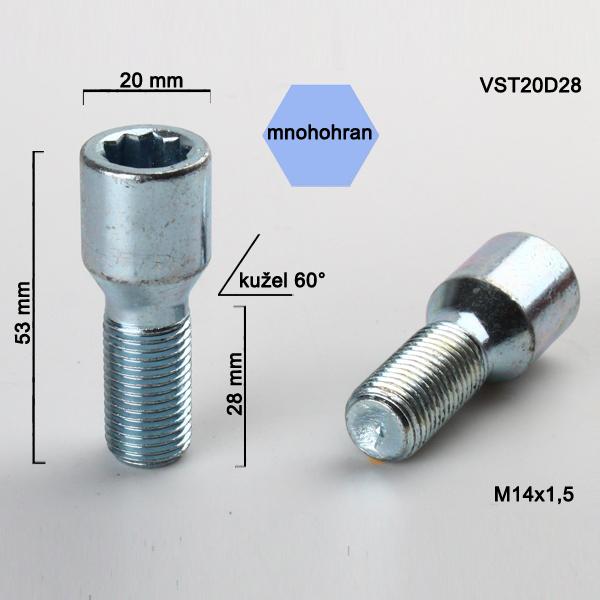 Šroub M14x1,5x28 kužel s vnitřním mnohohranem, průměr hlavy 20mm, výška 53